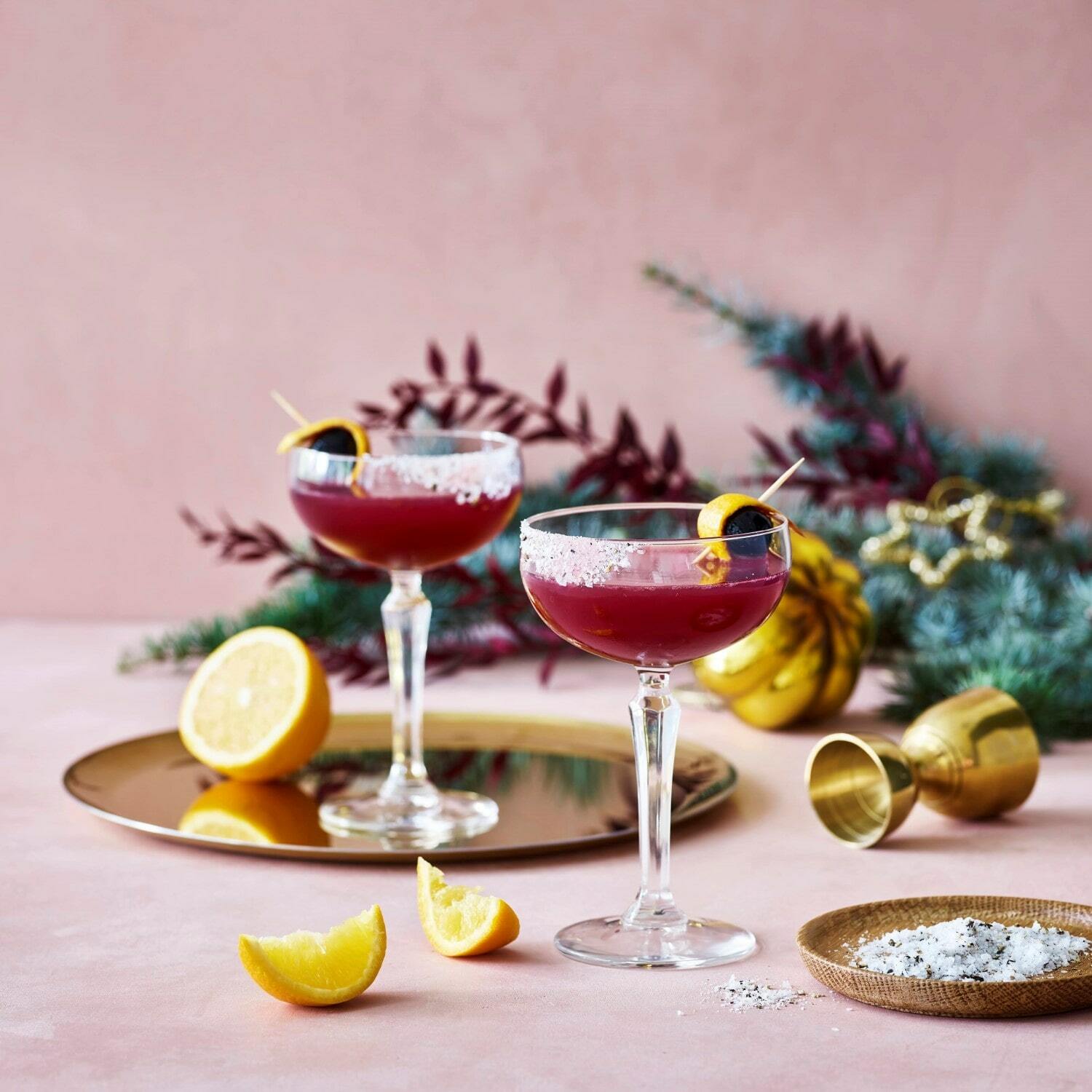 - Gnid kanten af cocktailglasset med en appelsinbåd